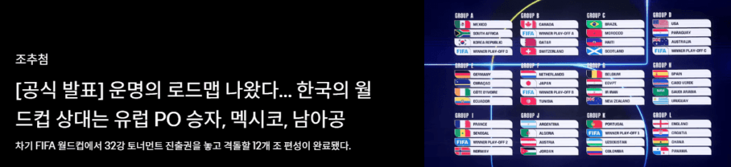 2026 월드컵 조추첨 및 조별 순위 확인 바로가기
